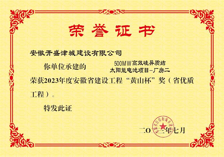 • 黃山杯--“500MW高效硅異質(zhì)結太陽能電池項目-廠房二”